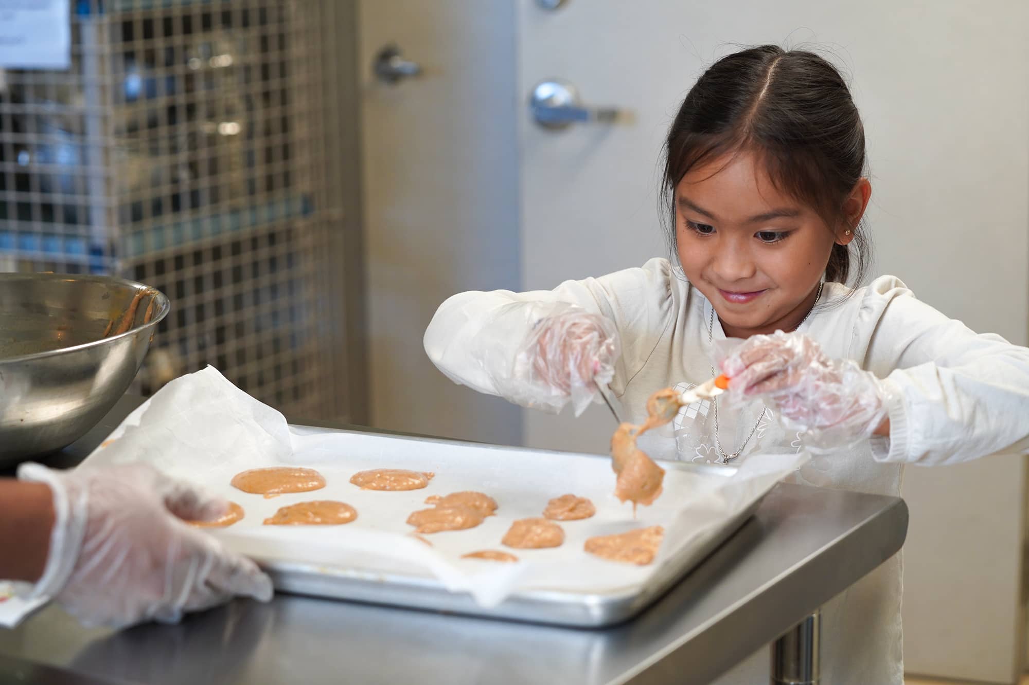 Isabella Iriarte makes snickerdoodle applesauce cookies during the Sew, Stitch, and