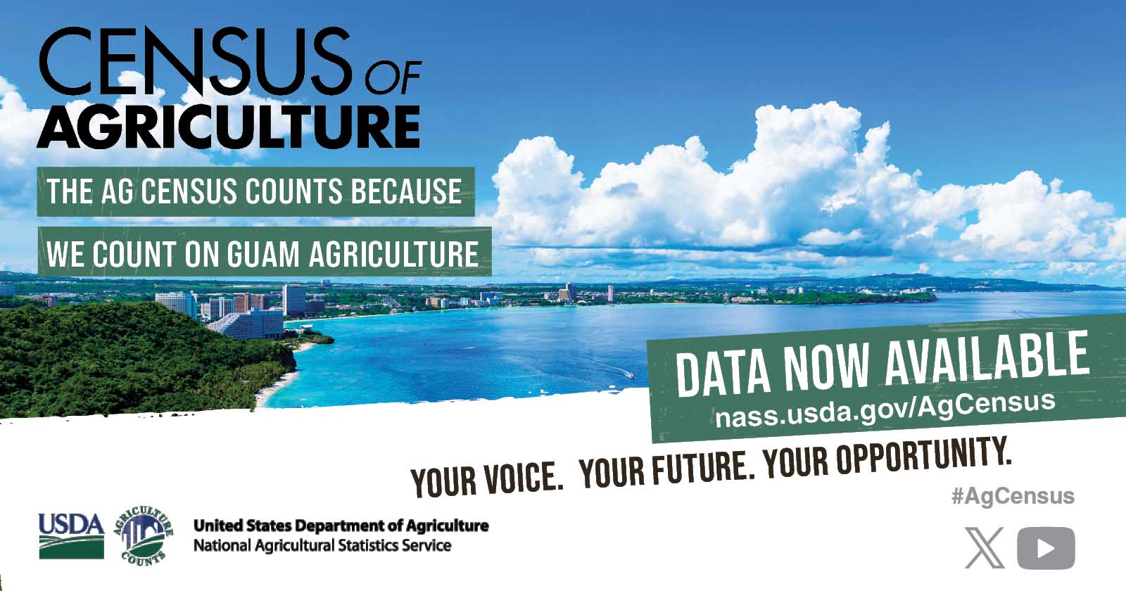 “We thank the producers who gave their time to complete the questionnaire. The Census of Agriculture data tells their agriculture story,” said NASS Administrator Joseph Parsons. “The agricultural census data provides vital data that helps shape policies, allocate resources, and support the growth and sustainability of agriculture in Guam.”
