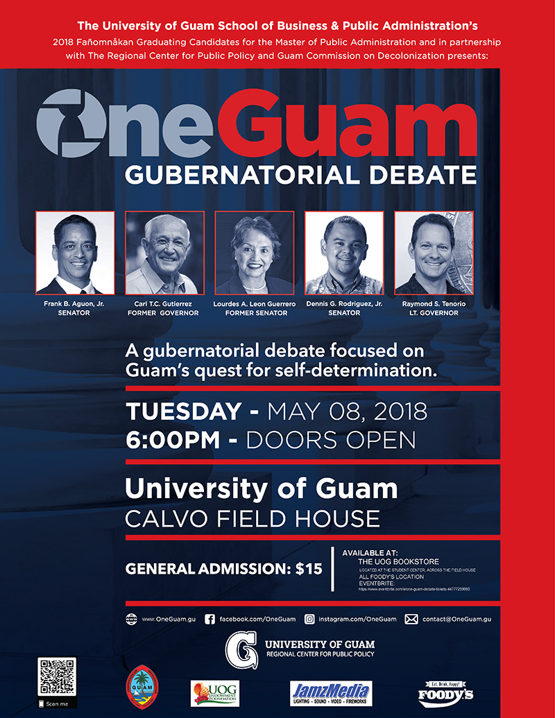 The One Guam Debate will provide the candidates a platform to share their ideas on the decolonization of Guam and give voters a rare opportunity to compare the candidates' positions side by side.
